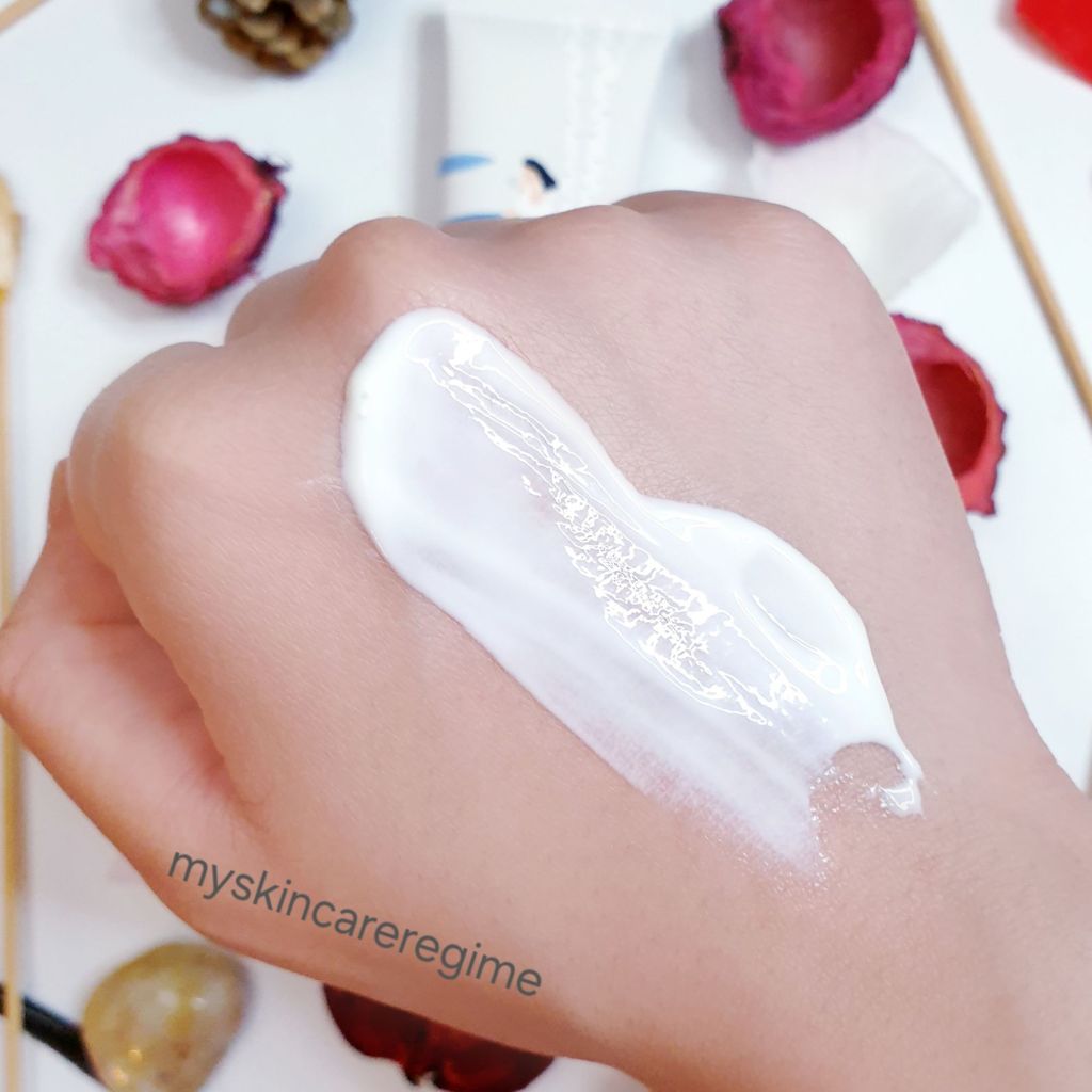 Texture: This is a lightweight, almost weightless, yet creamy sunblock. It feels hydrating and moisturising when applying, but has a thin finish. As you can see in the swatch video below, this is not sticky or tacky.