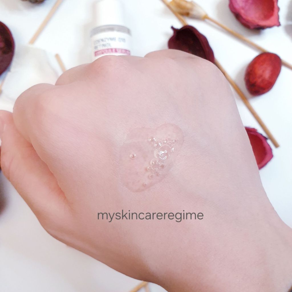Overall Rating and Conclusion: This is a comfortably lightweight serum for hydration (barrier support + soothing) and provides antioxidative protection (via the Coenzyme Q10). In terms of Retinol effects, this is more suited for beginner Retinol users who want a very low-strength retinol with no irritation risk.